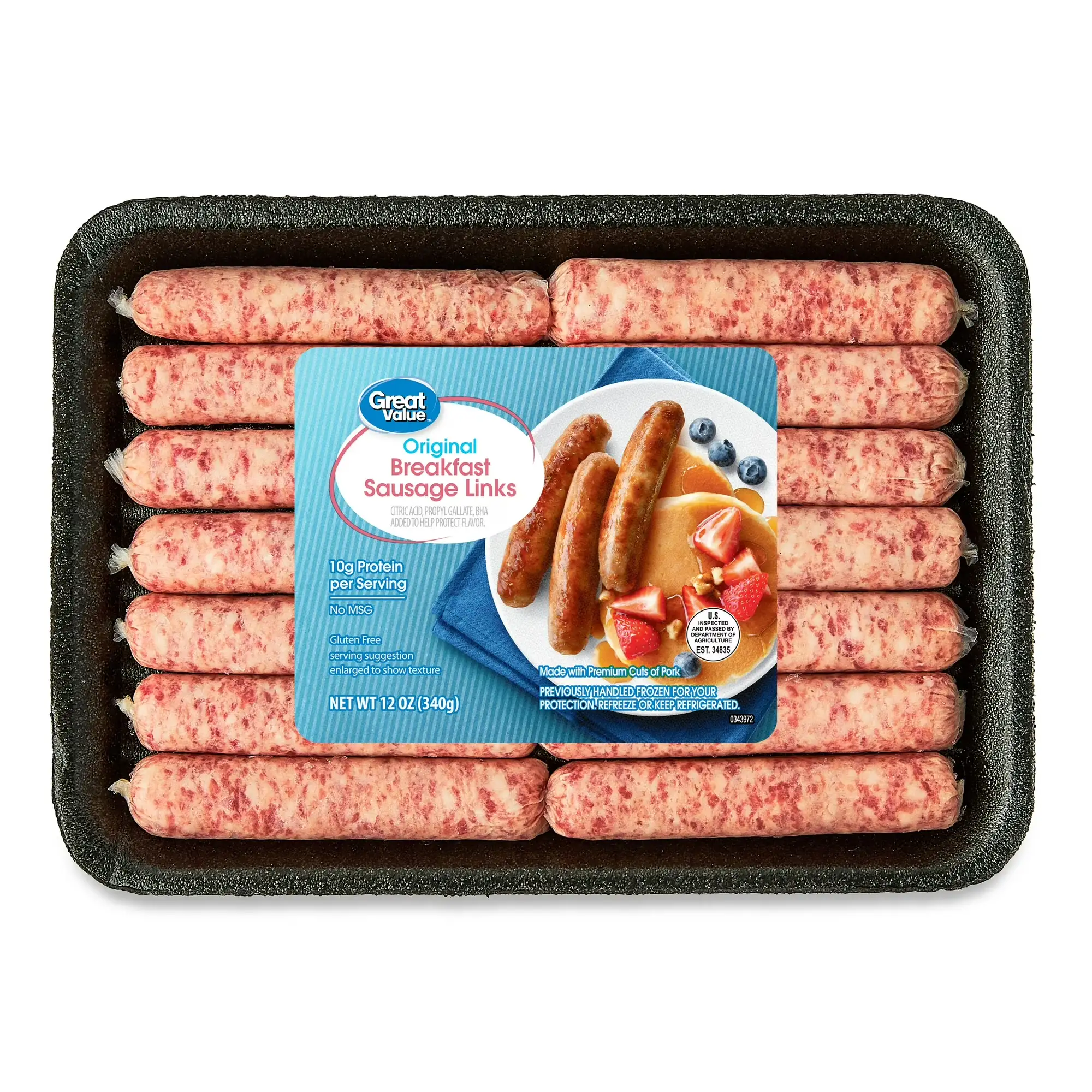 Great Value Uncooked Original Breakfast Pork Sausage Links, 12 oz Package. Only 1 g of carbohydrates per serving